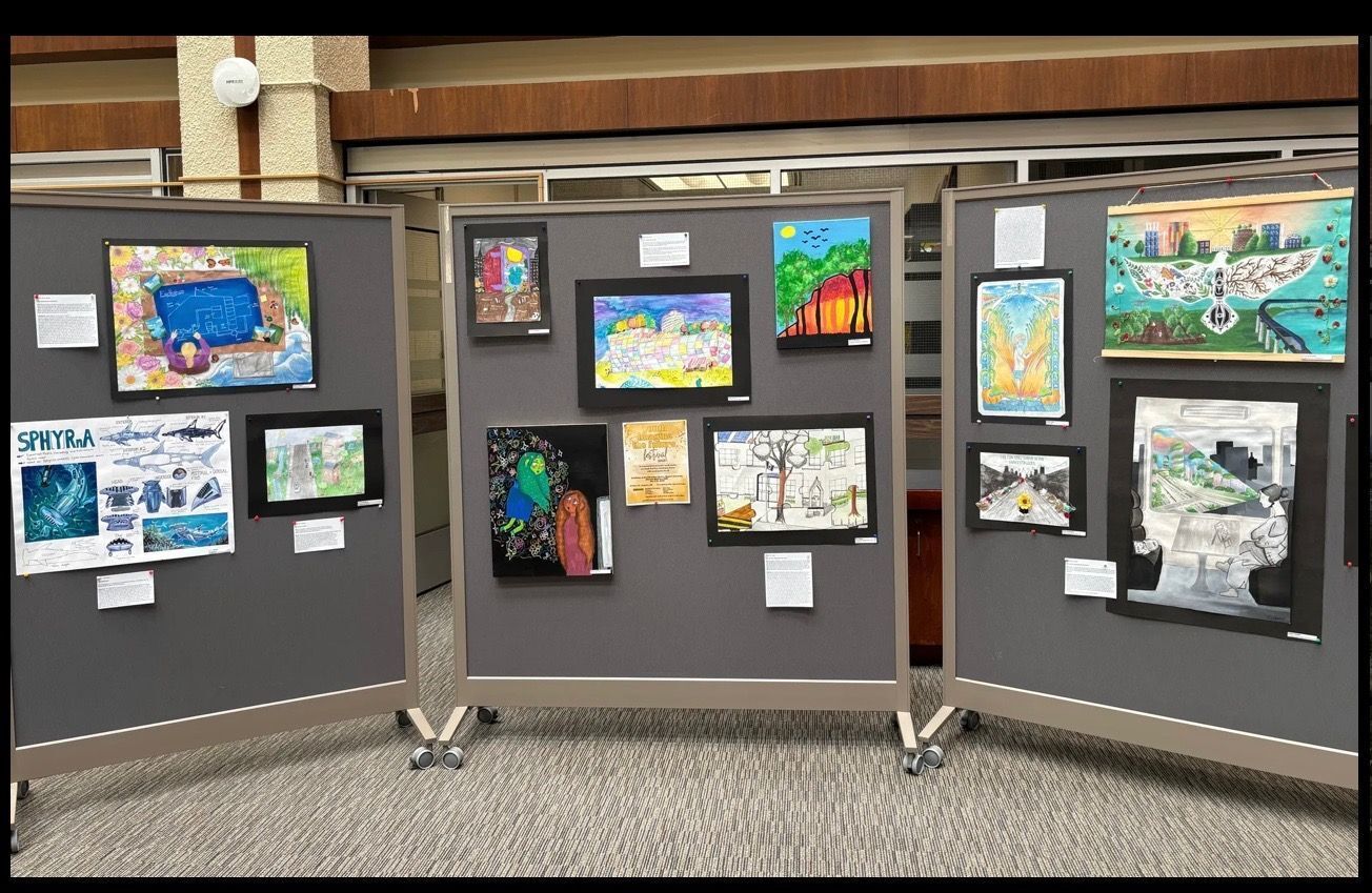 Every year, some of the youth work to show their ideas of a more sustainable future with social justice through art or creative writing (short stories.) We opened up the submissions portal mid-October 2025 and stories began to roll in, then photos of art. We ended up with 160 creative submissions!